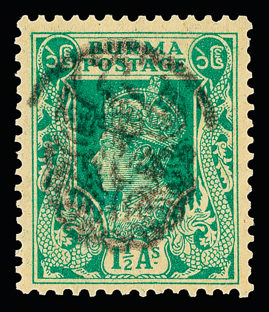 696 og image1942, 1½a King George VI, Myaungmya overprint Type II (2012 J.S.C.A. 1B17), with vibrant color on pristine paper, sound with clear, clean overprint, o.g., lightly hinged, Very Fine, scarce. 2012 J.S.C.A. yen 30,000 (HK$ 1,520). (Image1) (Image2) (All Images)