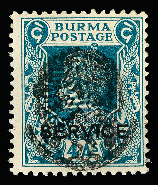 704 og image1945, 4a King George VI Official, Henzada overprint Type II, unissued (2012 J.S.C.A. 1B45), Post Office fresh and bright, o.g., very lightly hinged, Very Fine. (Image1) (Image2) (All Images)