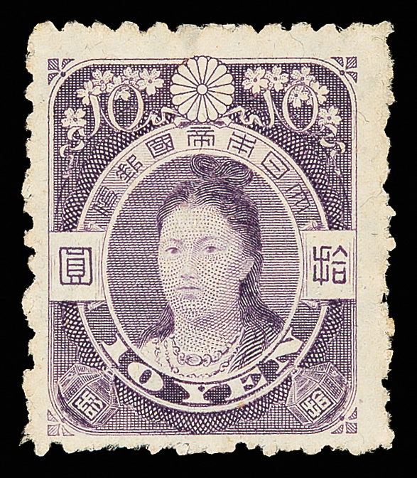 738 og image1914, Empress Jingo, watermarked, 10y violet (J.S.C.A. 122. Scott 147), clean and sound with bold color, o.g., lightly hinged, nearly Very Fine, ex "Sunrise Collection". Scott $600 (HK$ 4,620). (Image1) (Image2) (All Images)
