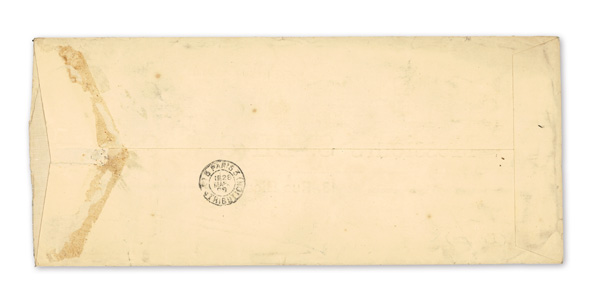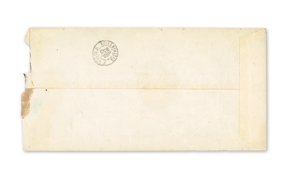 740 cover image1893 (Feb. 5), "Meiji"-postmarked cover from Kobe to Paris, franked by 5s UPU Koban (#74, single & pair) and New Koban 10s brown orange (#79, pair) and 15s purple (#80), all tied by five strikes of "Kobe Jpaan/5 II/1893/Meiji 26" double-ring postmarks; endorsed "via San Francisco" with blue double-ring Paris receiver (Mar. 29) on front; reverse with blurred Yokohama Meiji transit, the backflap with sender's "Greppi & Co." address; slight damage to stamps from wrinkles and edge wear, Fine to Very Fine. (Image1) (Image2) (All Images)