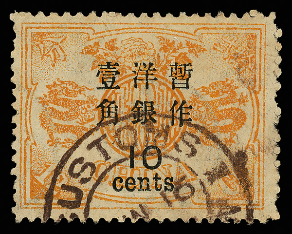 97 O image1897, Large Figures wide surcharge on Dowager, 1st printing, 10¢ on 12ca brown orange (Chan 54. Scott 45), well centered with robust color and neatly struck Customs cancel, Very Fine, a lovely and scarce issue. Scott $3,400 (HK$ 26,150). (Image1) (Image2) (All Images)