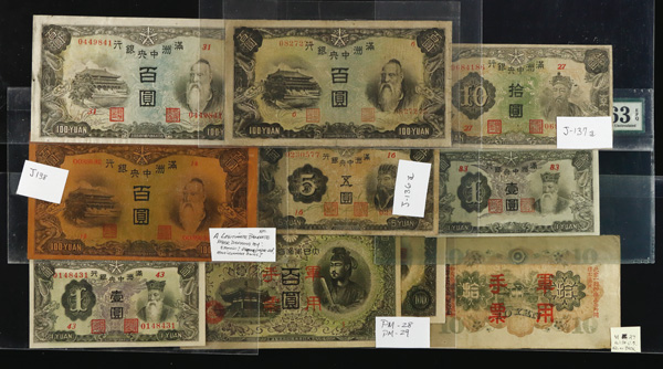1080 imageChina, Collection Of Chinese, Military & Manchukuo Banknotes, condition ranges from Poor-UNC; inspection is a must; 50+ notes. (Video for this lot) (Image1) (Image2) (All Images)