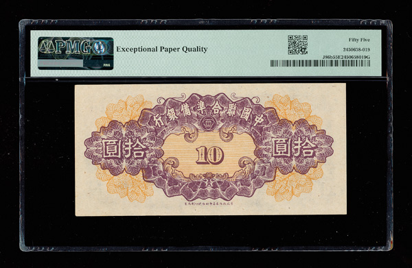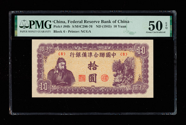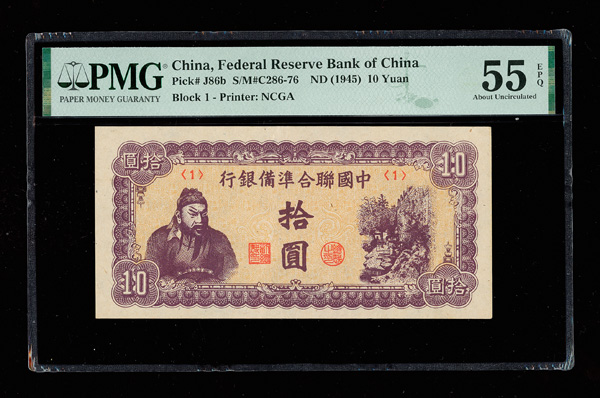 1100 imageGroup of (2) China, ND (1945) 10 Yuan, Federal Reserve Bank Of China, S/M#C286-76, PMG Graded Notes, includes: (1) PMG 50 About Unc EPQ & (1) PMG 55 About Unc EPQ. (Image1) (Image2) (Image3) (Image4) (All Images)