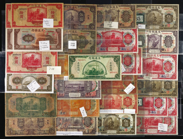 1084 imageChina, Collection of Bank of Communications Banknotes, 1914-40s, condition ranges from VG-Uncirculated; inspection is a must; 40+ notes. (Video for this lot) (Image1) (Image2) (Image3) (Image4) (All Images)