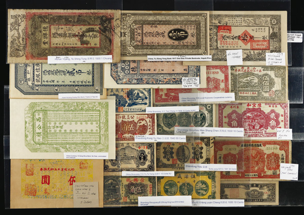 1083 imageChina: Locals, Provincials, Unlisted Issues, & More, 1914-1949, absolutely saturated in more desirable notes (49) total notes; condition ranges from Very Good to Uncirculated; fully imaged online. (Video for this lot) (Image1)