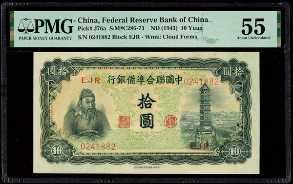 1107 imageChina, ND (1943) 10 Yuan, Federal Reserve Bank Of China, S/M#C286-73, PMG 55 About Uncirculated (Pick-J76a) (Image1) (Image2) (All Images)