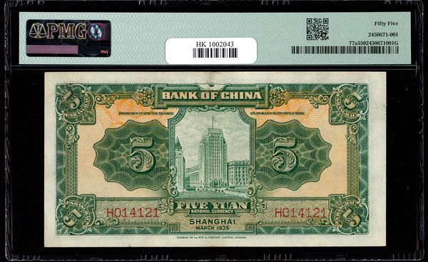 1108 imageChina, 1935 5 Yuan - Shanghai, Bank Of China, S/M#C294-202, PMG 55 About Uncirculated (Pick-77a) (Image1) (Image2) (All Images)