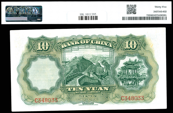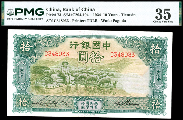 1106 imageChina, 1934 10 Yuan - Tientsin, Bank Of China, S/M#C294-194, PMG 35 Choice Very Fine (Pick-73) (Image1) (Image2) (All Images)