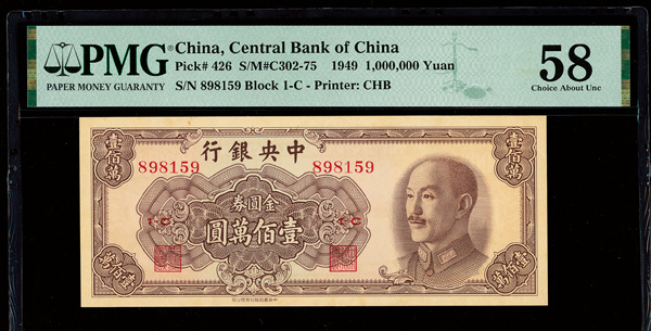 1160 imageChina, 1949 1,000,000 Yuan, Central Bank Of China, S/M#C302-75, PMG 58 Choice About Unc (Pick-426) (Image1) (Image2) (All Images)
