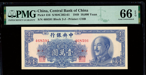 1159 imageChina, 1949 10,000 Yuan, Central Bank Of China, S/M#C302-61, PMG 66 Gem Uncirculated EPQ (Pick-416) (Image1) (Image2) (All Images)