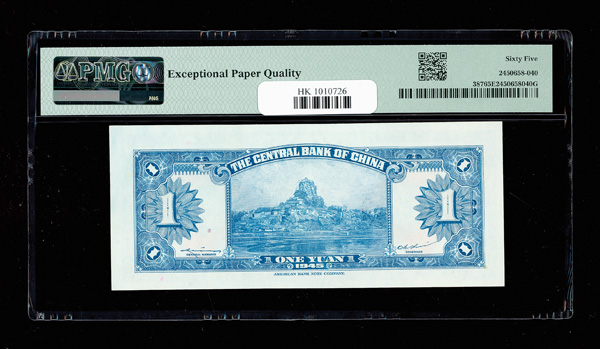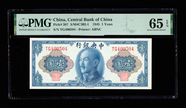 1157 imageChina, 1945 1 Yuan, Central Bank Of China, S/M#C302-1, PMG 65 Gem Uncirculated EPQ (Pick-387) (Image1) (Image2) (All Images)