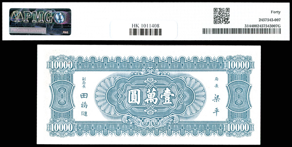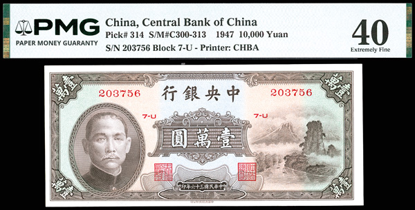 1146 imageChina, 1947 10,000 Yuan, Central Bank Of China, S/M#C300-313, PMG 40 Extremely Fine (Pick-314) (Image1) (Image2) (All Images)