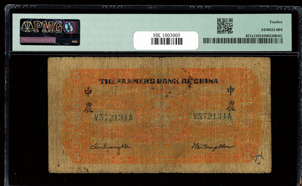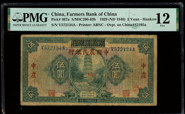 1181 imageChina, 1929 (ND 1940) 5 Yuan - Hankow, Farmers Bank Of China, S/M#C290-63b, PMG 12 Fine (Pick-467a) (Image1) (Image2) (All Images)