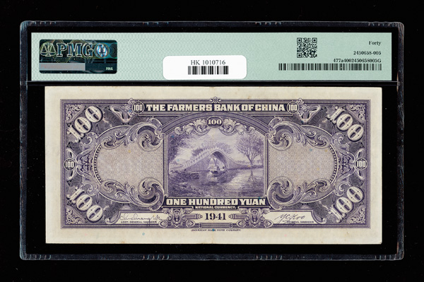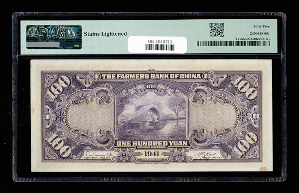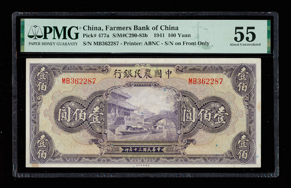 1189 imageChina, 1941 100 Yuan, Farmers Bank Of China, S/M#C290-83b, PMG 55 About Uncirculated (Pick-477a) (Image1) (Image2) (All Images)