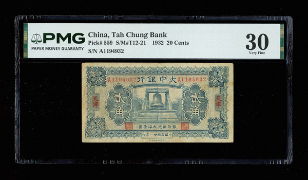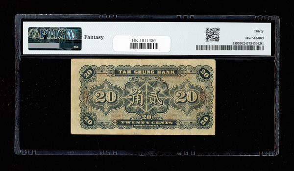 1194 imageChina, 1932 20 Cents, Tah Chung Bank, S/M#T12-21, PMG 30 Very Fine (Pick-559), Fantasy. (Image1) (Image2) (All Images)