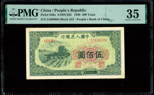 1216 imageChina, 1949 500 Yuan, People's Republic, S/M#C282, PMG 35 Choice Very Fine (Pick-846a) (Image1) (Image2) (All Images)