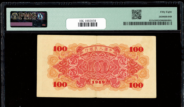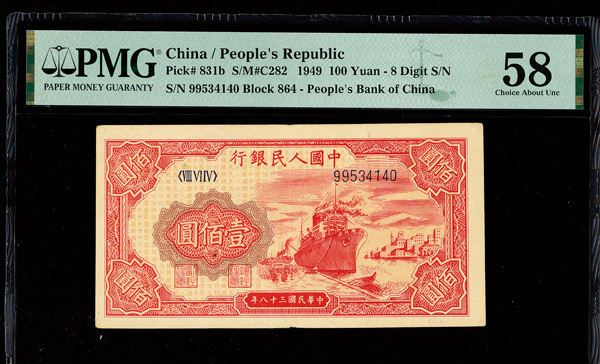 1210 imageChina, 1949 100 Yuan - 8 Digit S/N, People's Republic, S/M#C282, PMG 58 Choice About Unc (Pick-831b) (Image1) (Image2) (All Images)
