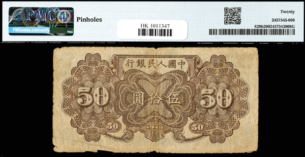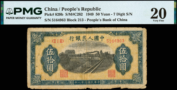 1208 imageChina, 1949 50 Yuan - 7 Digit S/N, People's Republic, S/M#C282, PMG 20 Very Fine (Pick-829b) (Image1) (Image2) (All Images)