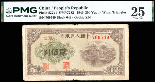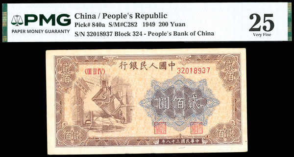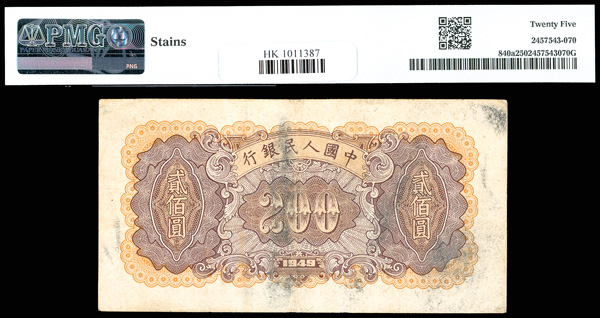 1214 imageChina, 1949 200 Yuan, China / People's Republic, S/M#C282, PMG 25 Very Fine (Pick-840a), stain. (Image1) (Image2) (All Images)