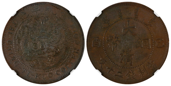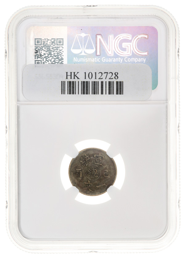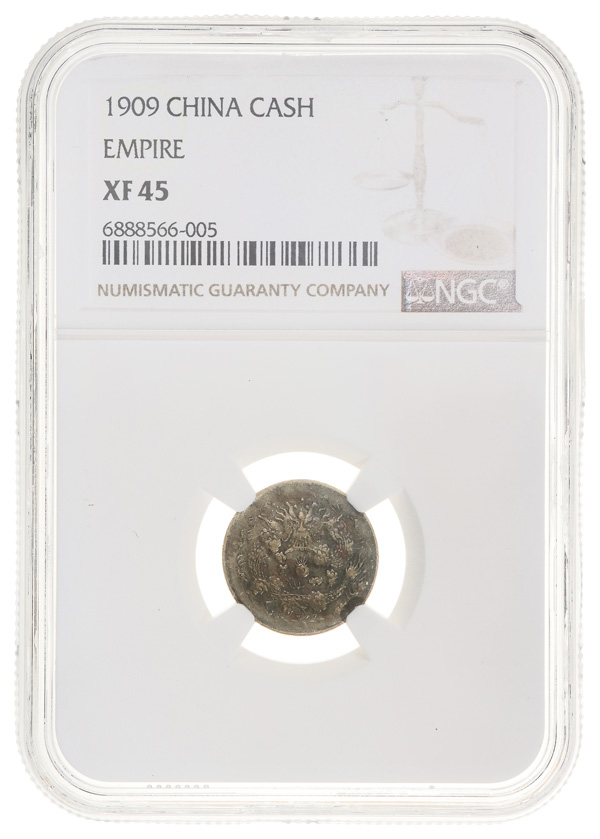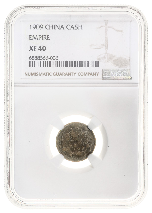 1015 imageChina Xuantong (1909-1912). Cash (Wen), 1909., Facing dragon. Y.18. NGC XF 40. (Image1) (Image2) (Image3) (All Images)