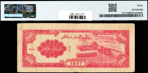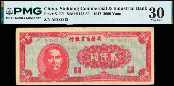 1347 imageSinkiang, 1947 2000 Yuan, Sinkiang Commercial & Industrial Bank, S/M#H123-60, PMG 30 Very Fine (Pick-S1771) (Image1) (Image2) (All Images)