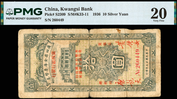 1335 imageKwangsi, 1936 10 Silver Yuan, Kwangsi Bank, S/M#K33-11, PMG 20 Very Fine (Pick-S2309) (Image1) (Image2) (All Images)