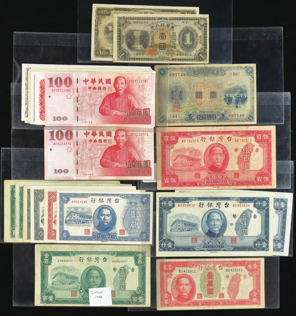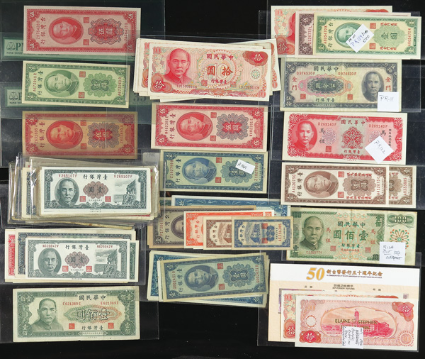1369 imageTaiwan, Collection of Banknotes, 1949-86, condition ranges from VG-Choice UNC; inspection is a must. (Video for this lot) (Image1)