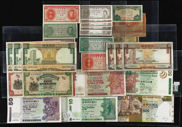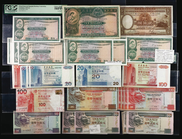 1399 imageCollection Of Hong Kong & Chartered Banks Currency, over (100) notes; condition ranges from Poor-Choice UNC; inspection is a must; perfect for any dealer. (Video for this lot) (Image1) (Image2) (Image3) (All Images)