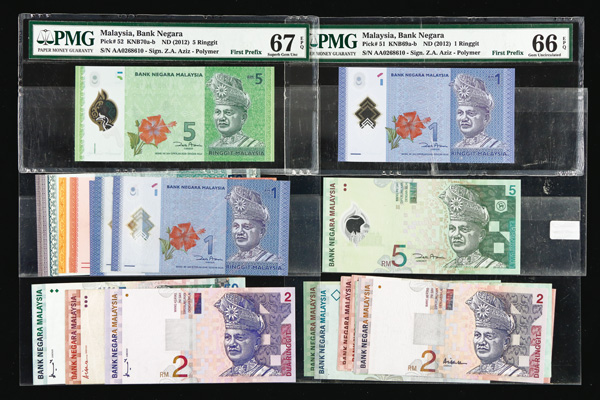 1405 imageMalaysia, Currency Collection, 1972-2012 (44) total notes; condition ranges from Fine to Uncirculated; fully imaged online. (Video for this lot) (Image1) (Image2) (Image3) (All Images)