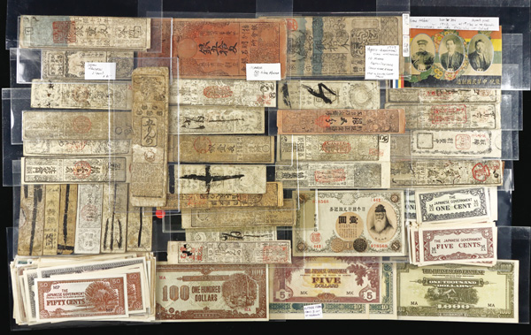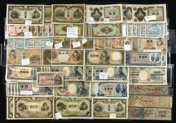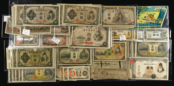1400 imageJapan & Japanese Occupations, Currency Collection, 1800-1940, rich in desirable notes (385) total notes; condition ranges from Very Good to Uncirculated; fully imaged online. (Video for this lot) (Video2 for this lot) (Image1) (Image2) (Image3) (All Images)