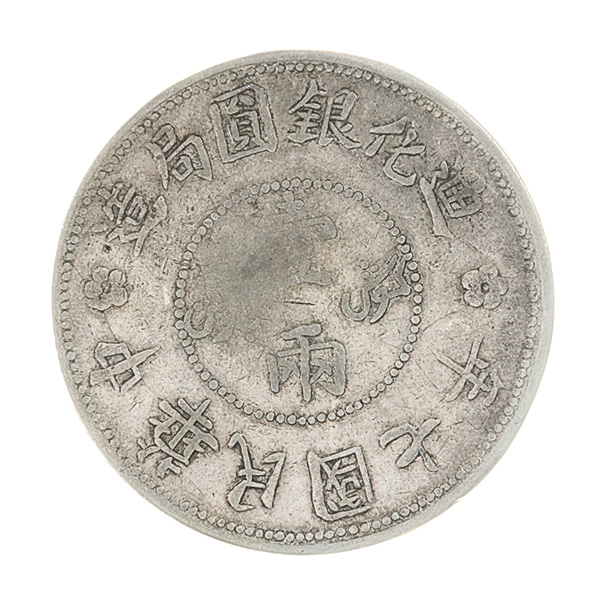 1045 imageXinjiang (Sinkiang). Silver Sar, year 6 (1917)., Dihua (Urumchi). Chinese legends, Turki legend either side of central legend / Turki legend "zuriba Urumchi" in central beaded circle, wreath around, rosette at top. Y.45. Light stain lower reverse margin. About Uncirculated. (Image1) (Image2) (All Images)
