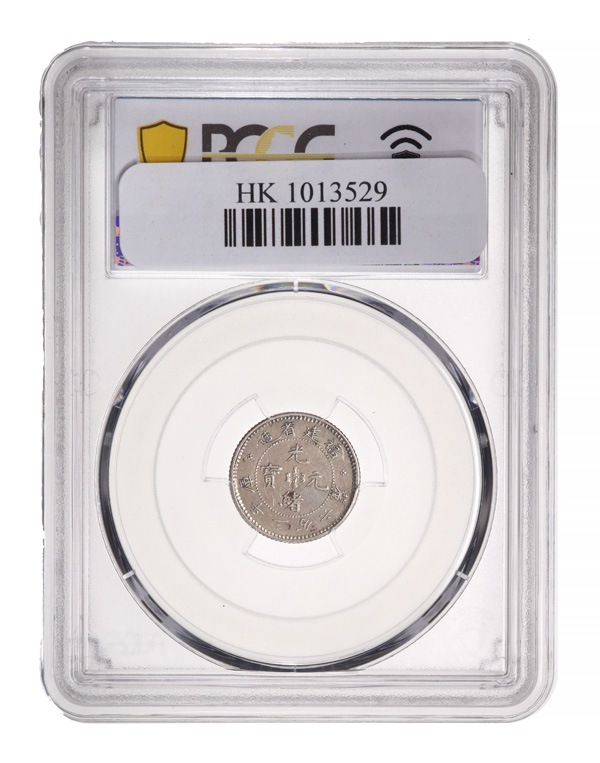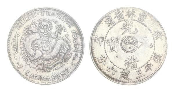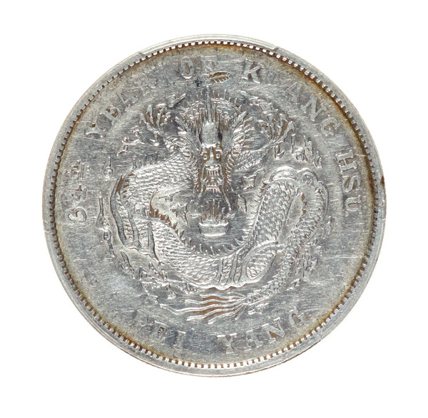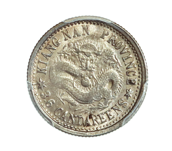 1034 imageChina, Kiangnan, CD (1900), 3.6 Candareens, 5 Cents, Nanking Ming, Kuang-hsu (Guangxu), PCGS AU58 (LM-236), (Image1)
