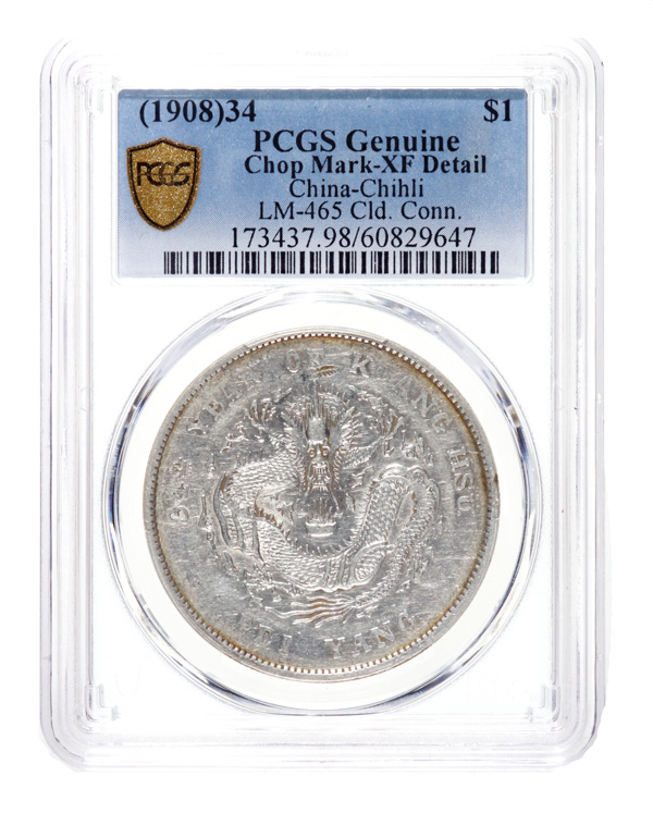1031 imageChina, Chihli (1908)34 (Pei Yang) $1 7 Mace 2 Candareens (Dollar, Tientsin Mint, PCGS Chop Mark - XF Detail (LM-465), (Image1) (Image2) (Image3) (All Images)