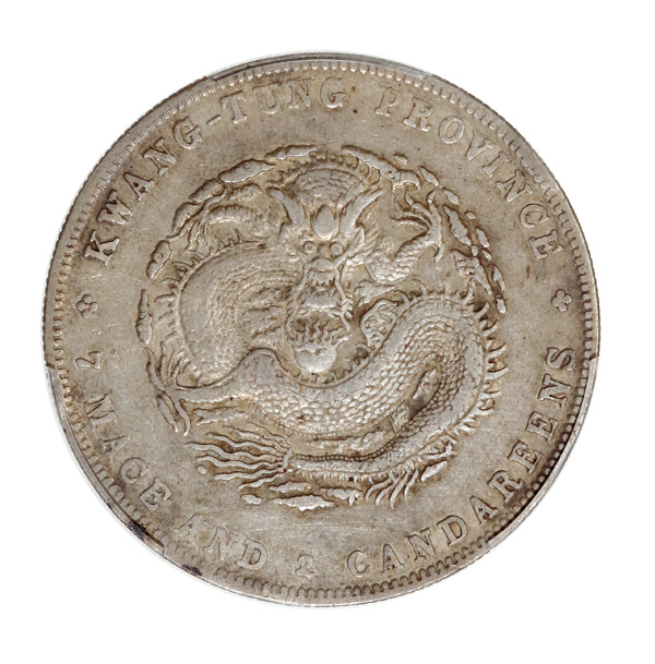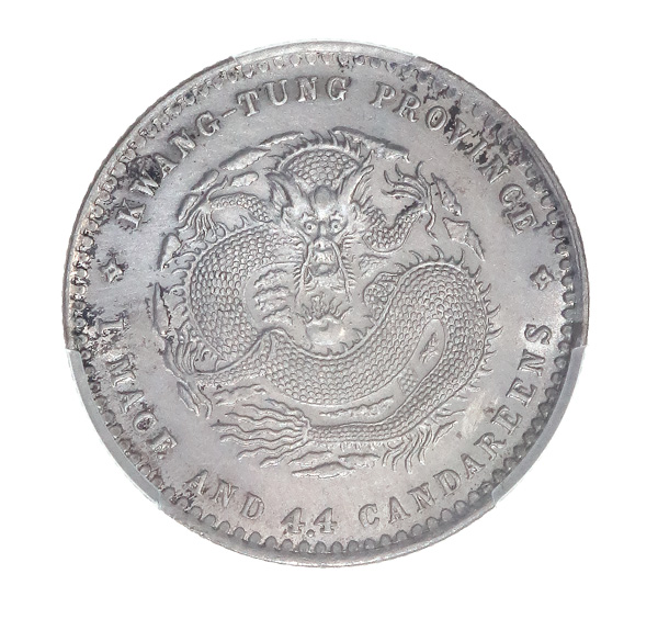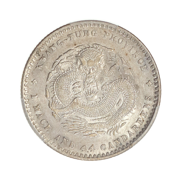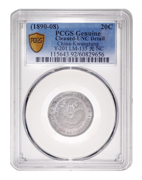 1038 imageChina, Kwangtung (1890-08), 1 Mace 4.4 Candareens, 20 Cents, Kwangtung Mint, Kuang-hsu (Guangxu), PCGS Cleaned - UNC Detail (LM-135), (Image1) (Image2) (Image3) (All Images)