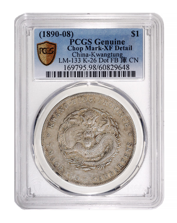 1039 imageChina, Kwangtung (1890-08) 7 Mac 2 Candareens (Dollar), Kwangtung Mint, PCGS Chop Mark - XF Detail (LM-133. Kann-26) (Image1) (Image2) (Image3) (All Images)
