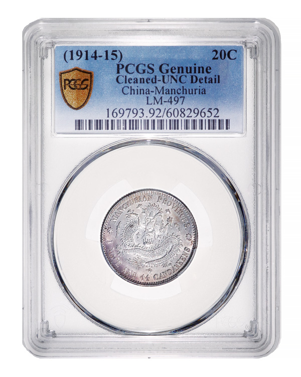 1040 imageChina: Manchurian Provinces, 1914-15 20 Cents PCGS Cleaned - UNC Detail (LM-497), PCGS graded Details of Uncirculated. (Image1) (Image2) (Image3) (All Images)