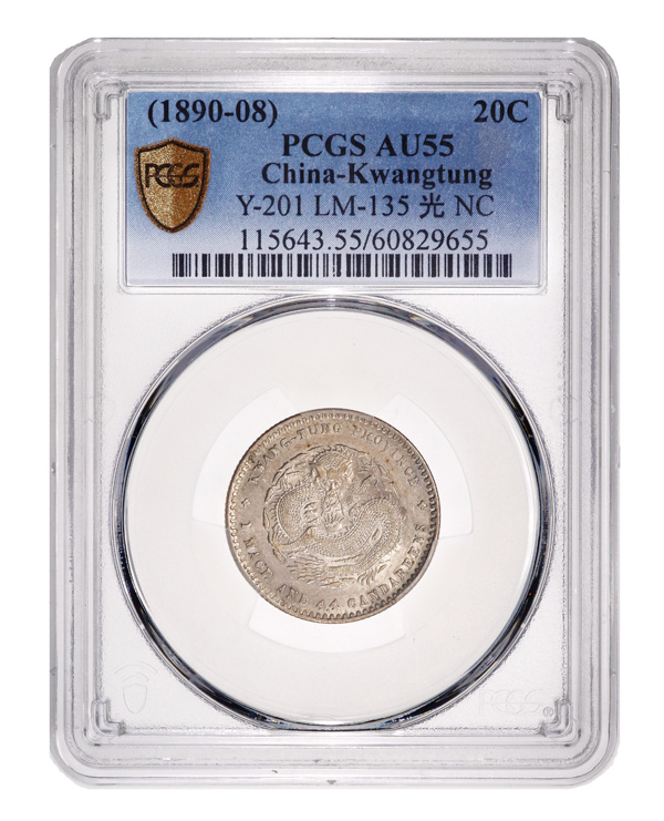 1037 imageChina, Kwangtung (1890-08), 1 Mace 4.4 Candareens, 20 Cents, Kwangtun Mint, Kuang-hsu (Guangxu), PCGS AU55 (LM-135), (Image1) (Image2) (Image3) (All Images)