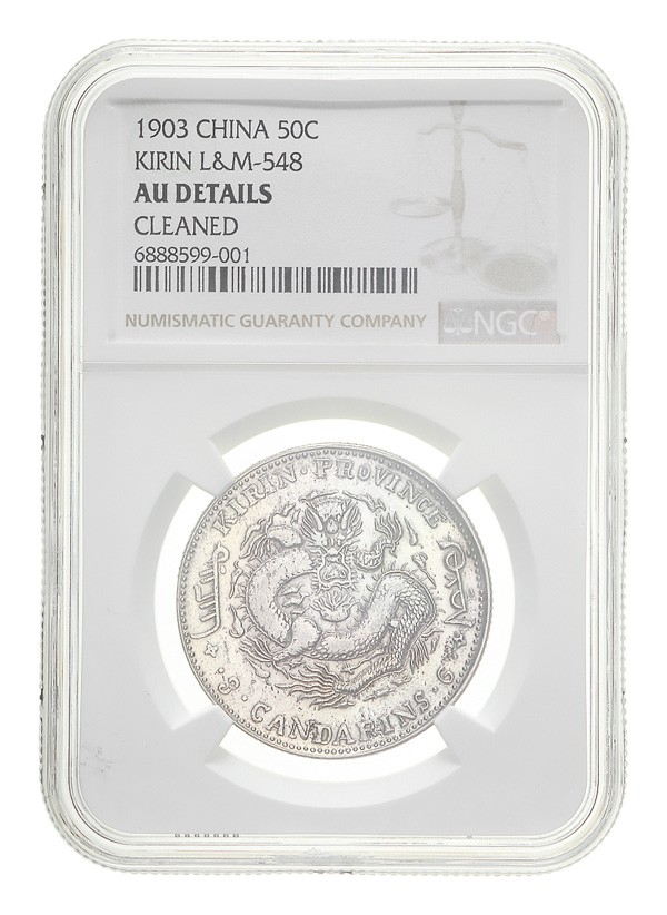 1035 imageChina: Kirin Province, 3 Mace 6 Candareens (50 Cents), CD (1903). Silver, L&M-548, Kirin Mint. Kuang-hsu (Guangxu).NGC Graded AU Details (Cleaned). (Image1) (Image2) (All Images)