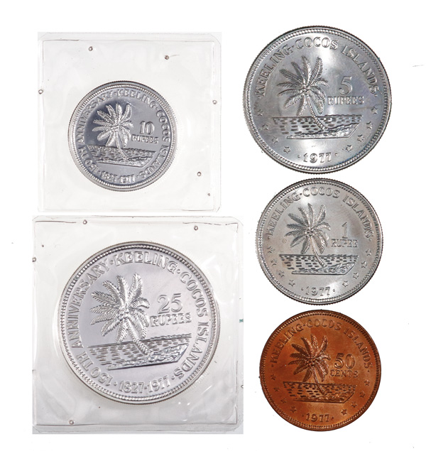 1058 imageCocos (Keeling) Islands, Complete set, 1977, 5c to 25R, John Clunies Ross bust left; X 1-9 (9), Brilliant Uncirculated, very scarce. (Image1) (Image2) (Image3) (All Images)