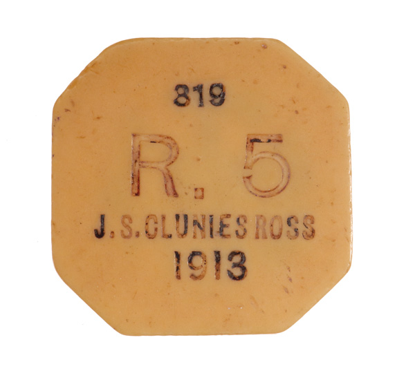 1057 imageCocos (Keeling) Islands, 5 Rupees, 1913, octagonal, KM Tn7; mintage 1,000, Very Fine. (Image1) (Image2) (All Images)