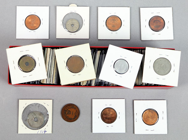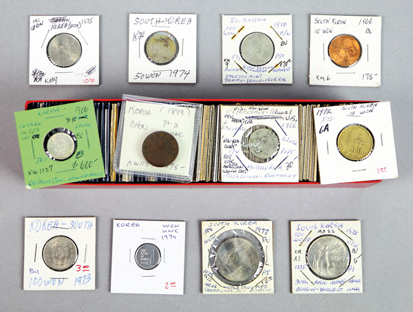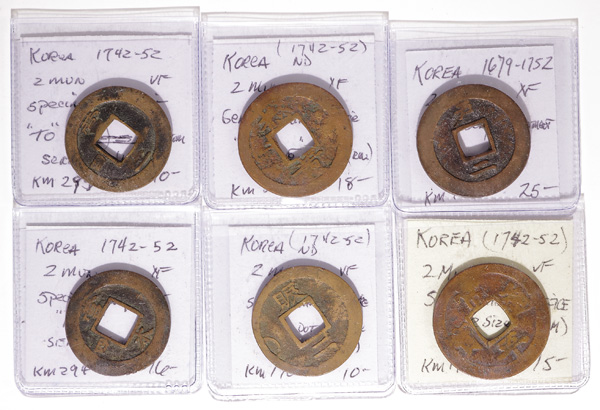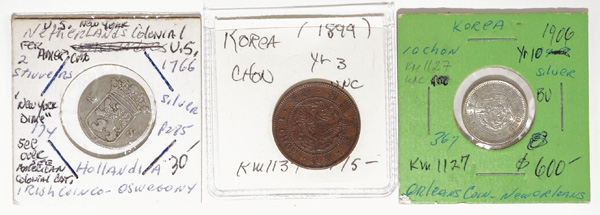1066 imageKorea, Large Lot of Minors, 18th Century to Modern, including Cast 1 Mun and 2 Mun (22); Japanese Protectorate silver 10 Chon, Year 10 (1906; KM1127), Uncirculated; ¼ Yang (2), 5 Chon (cleaned), 5 Fun (4), 1 Chon (5), ½ Chon (cleaned), Fine-EF; modern Korea (62), tokens (2), VF-Uncirculated; also a Holland 2 Stuivers 1766, VF (101). (Image1) (Image2) (Image3) (Image4) (Image5) (Image6) (Image7) (All Images)