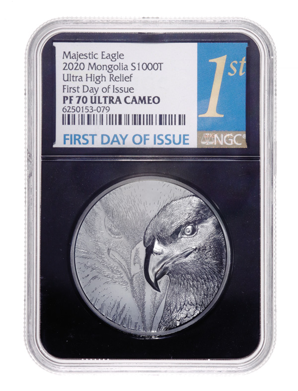 1069 imageMongolia, 2020 S1000T Majestic Eagle Ultra High Relief 2 oz.999 Silver First Day Of Issue NGC PF70 Ultra Cameo (Image1) (Image2) (Image3) (All Images)