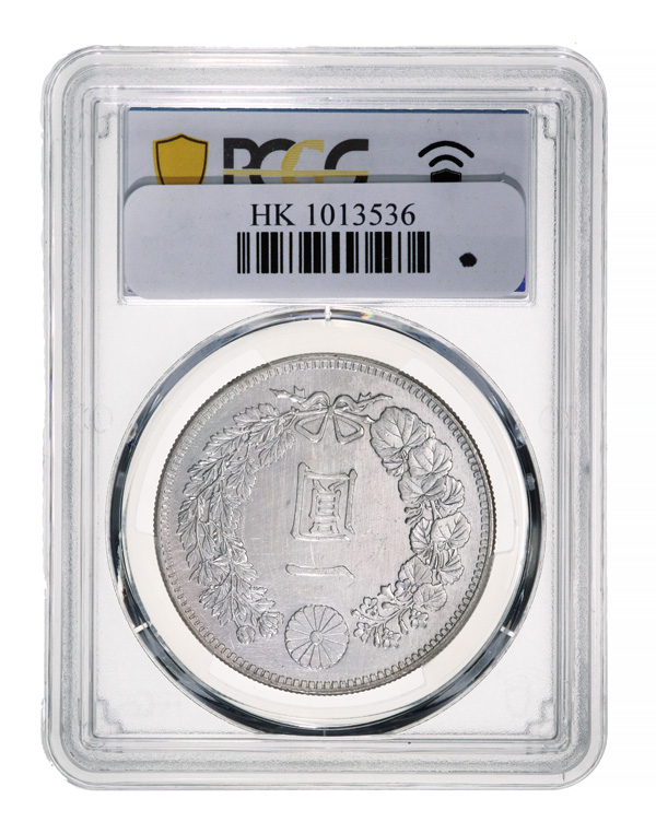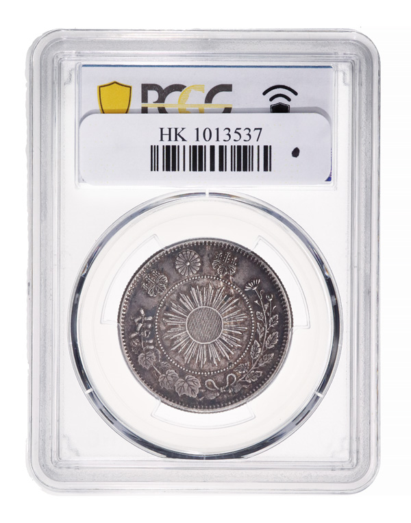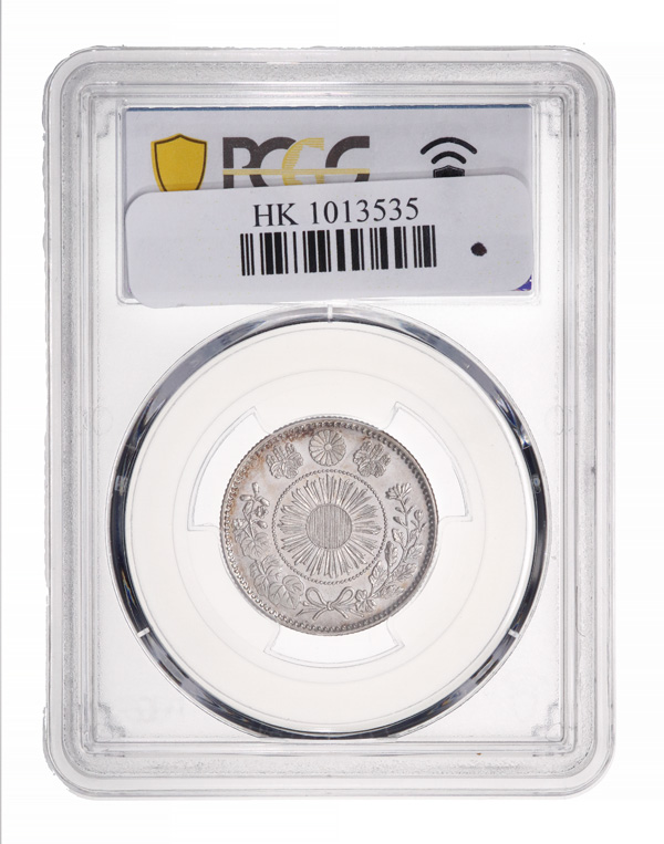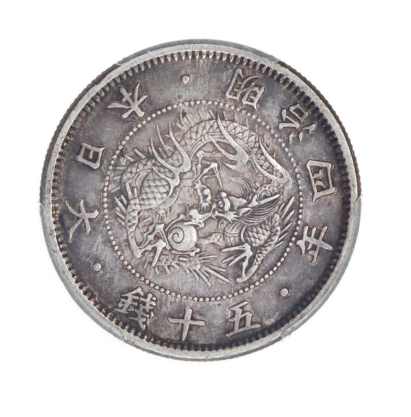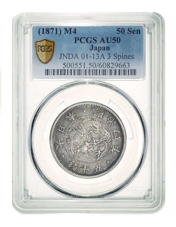 1063 imageJapan (1871) M4, 50 Sen, PCGS AU50, JNDA 01-13A 3 Spines. (Image1) (Image2) (Image3) (All Images)