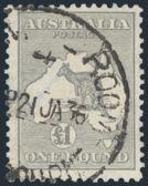 1231 128 image128, One Pound Kangaroo, F-VF, neatly cancelled, coloured mark on reverse shows through faintly (Image) Cat 275.00