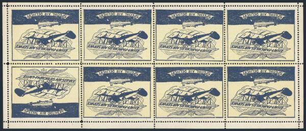 Elliot-Fairchild Air Service Complete Pane of 8 showing TALL "r" varieties at positions 2 & 4. VF, NH (Image)
