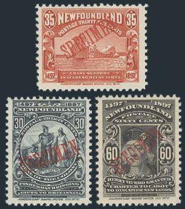 61-74, Complete Discovery of Newfoundland set with diagonal red "SPECIMEN" overprints. Fresh, F-VF, NH. Cat $1,500 (Image)