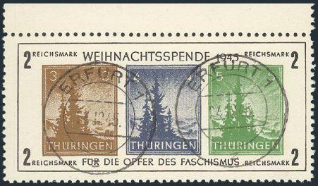 2496 16N3a image16N3a, Scarce sheet margin souvenir sheet of 3 with neat Erfurt 1945 CDS cancels. F-VF (Image) Cat 725.00