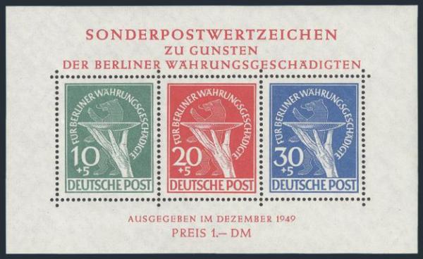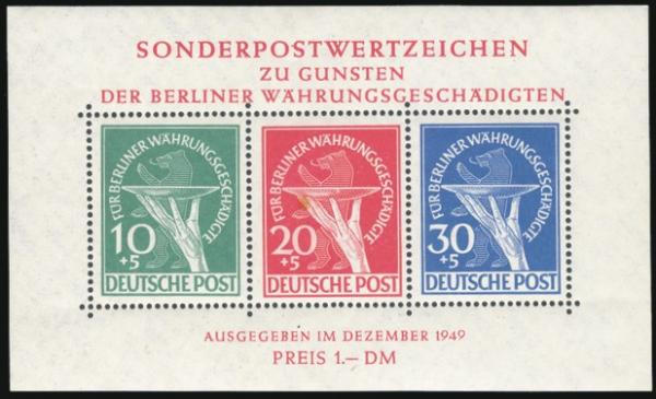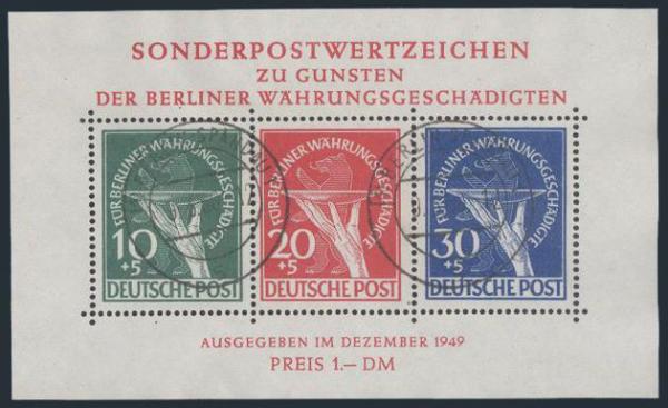 2484 9NB3a image9NB3a, Scarce used Berlin Bears souvenir sheet, neat Berlin Spandau 9 Mar 1950 CDS's. VF (Image) Cat 1,400.00