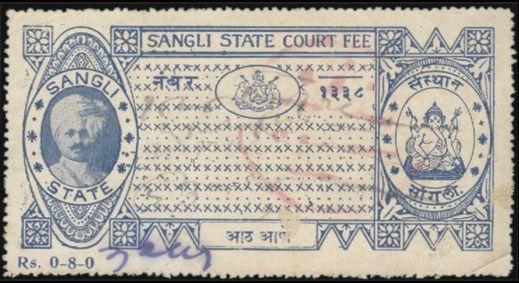 2655   imageSANGLI STATE: Court Fee Revenues 2, 3 & 8 Rupee (2 shades) circa 1922-32. VF, some toning (Koeppel & Manners #'s 18-9, 23 & 23a - $515 US) (Image) Estimate 100.00+ $Cdn