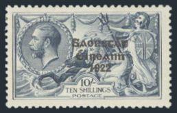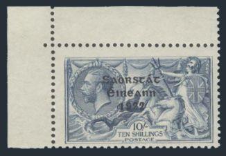 2709 58 image58, Ten Shilling Seahorse UL corner margin single, fresh, F-VF, NH (Image) Cat 625.00